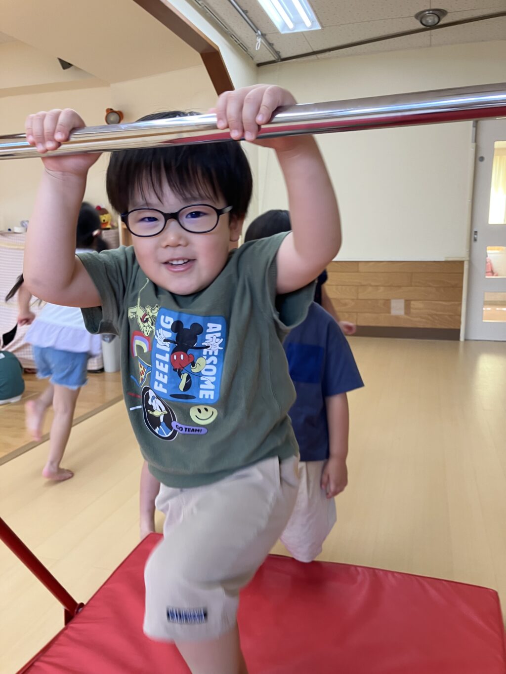 ひまわり組やさくら組さんのお兄さんお姉さんにならって鉄棒に挑戦❗