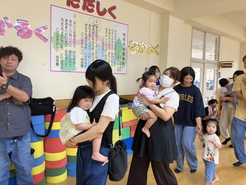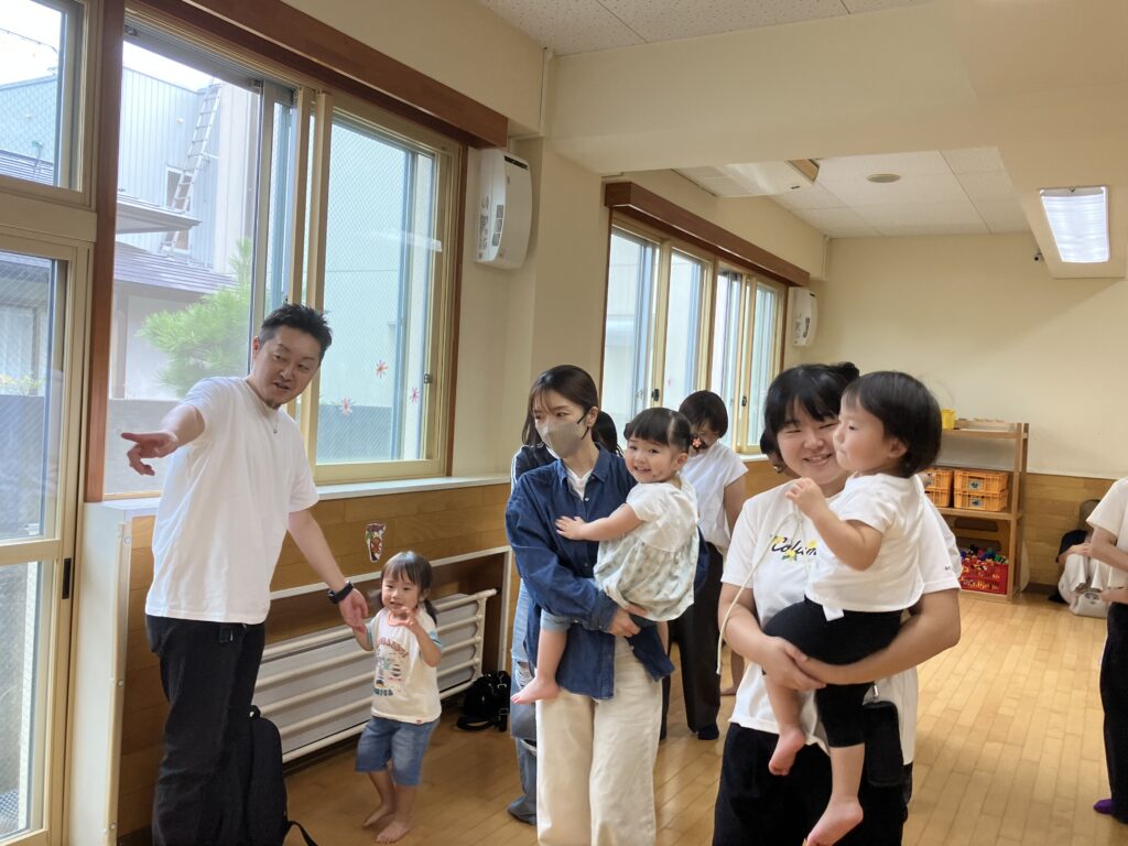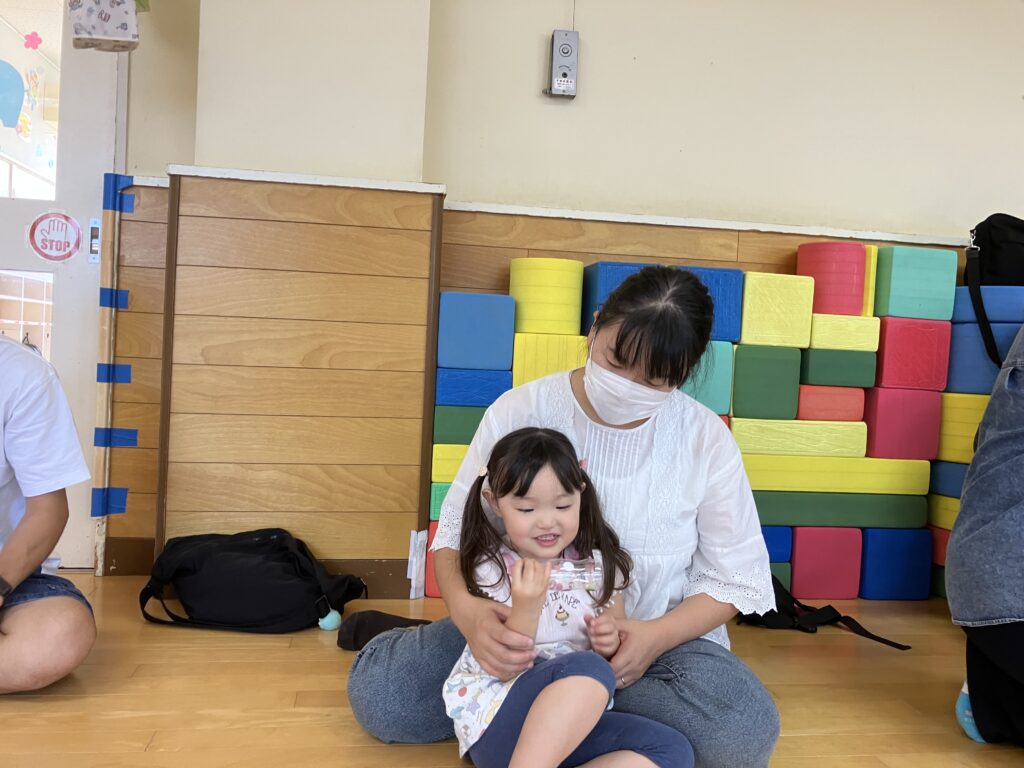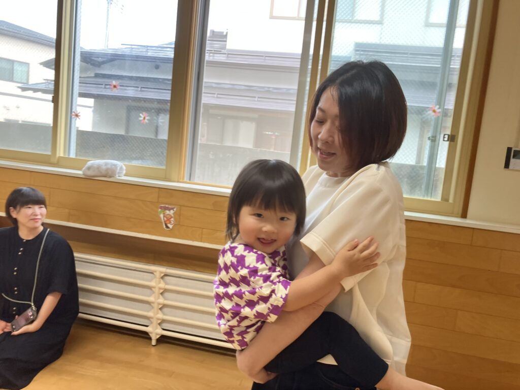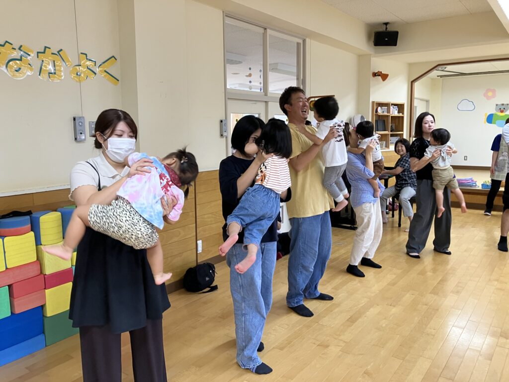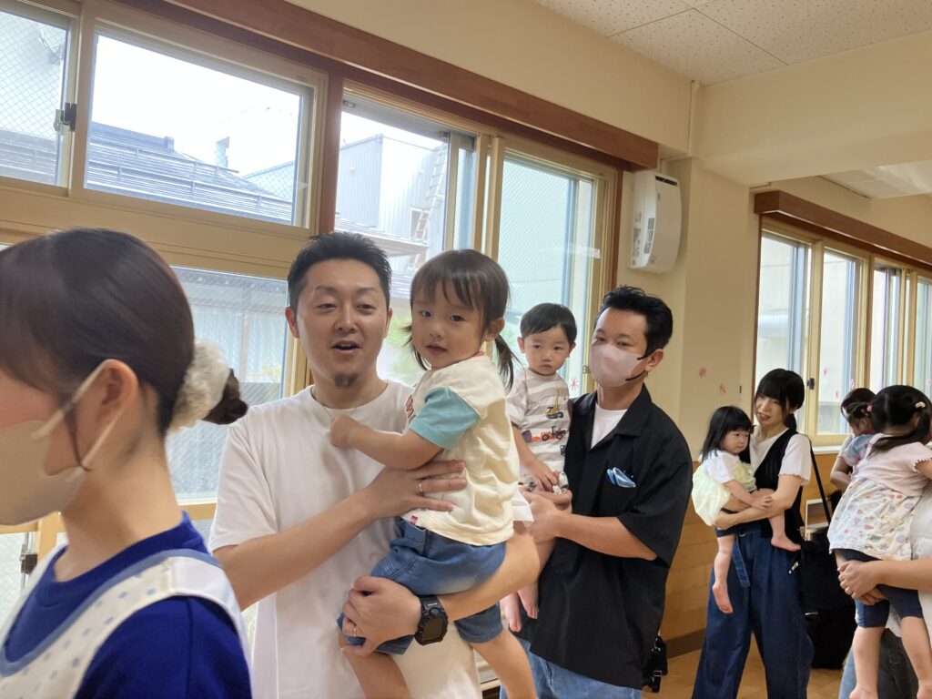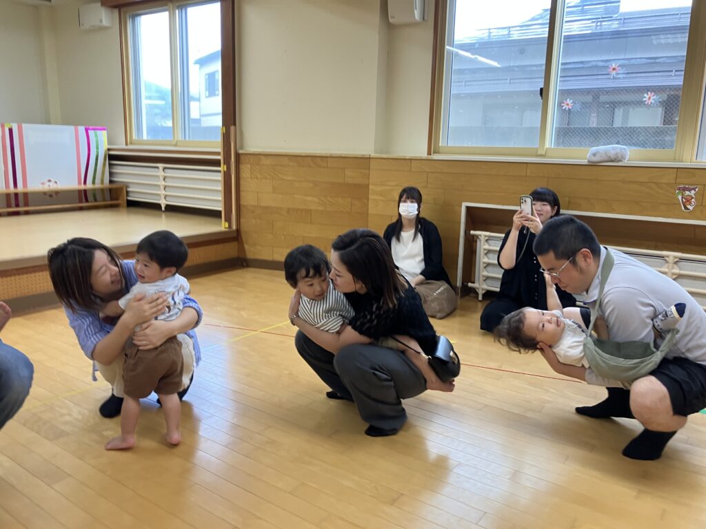 お家の方に高い高いをしてもらったり、しゃがんで「ギュー!」と抱きしめてもらったり…子どもたちの素敵な笑顔がたくさん見られました😊