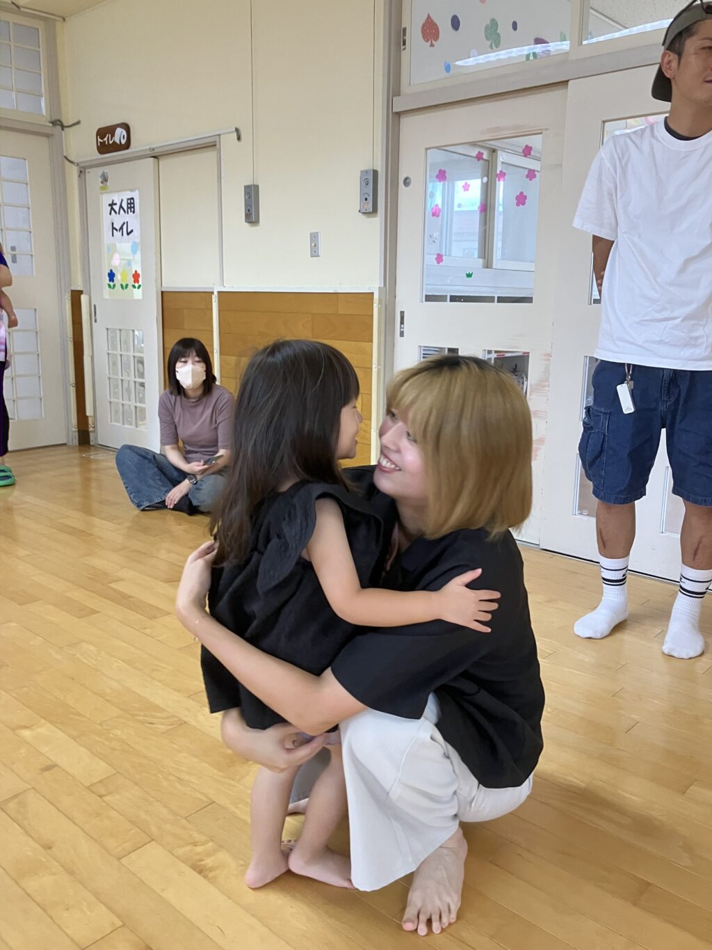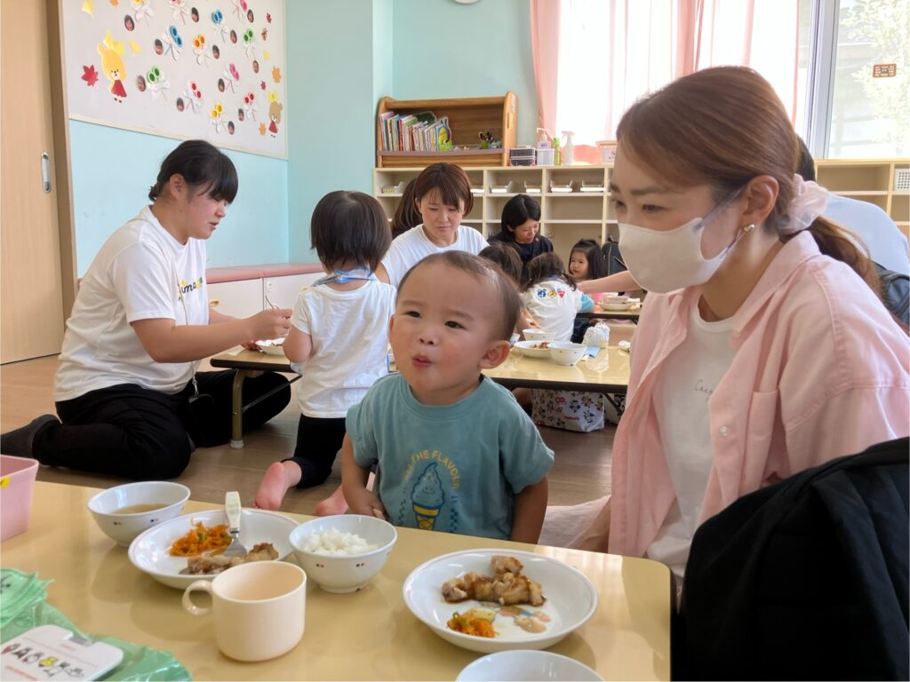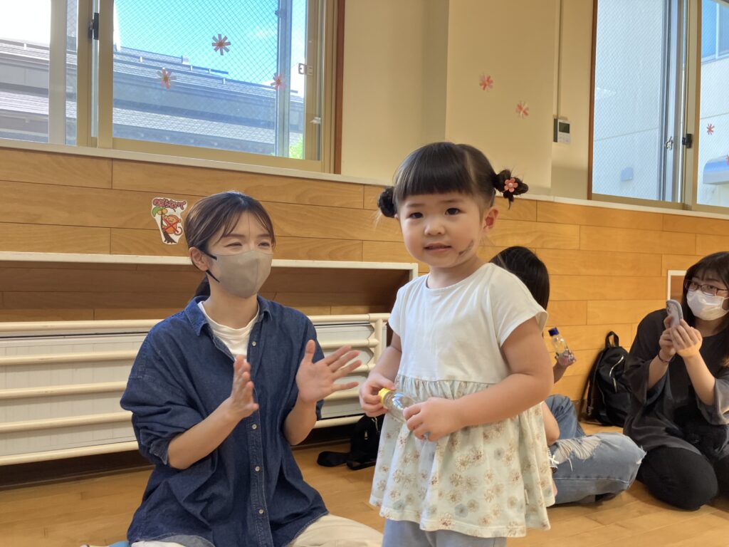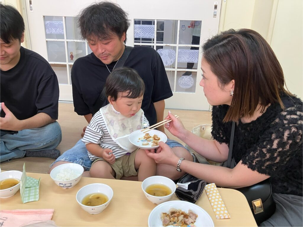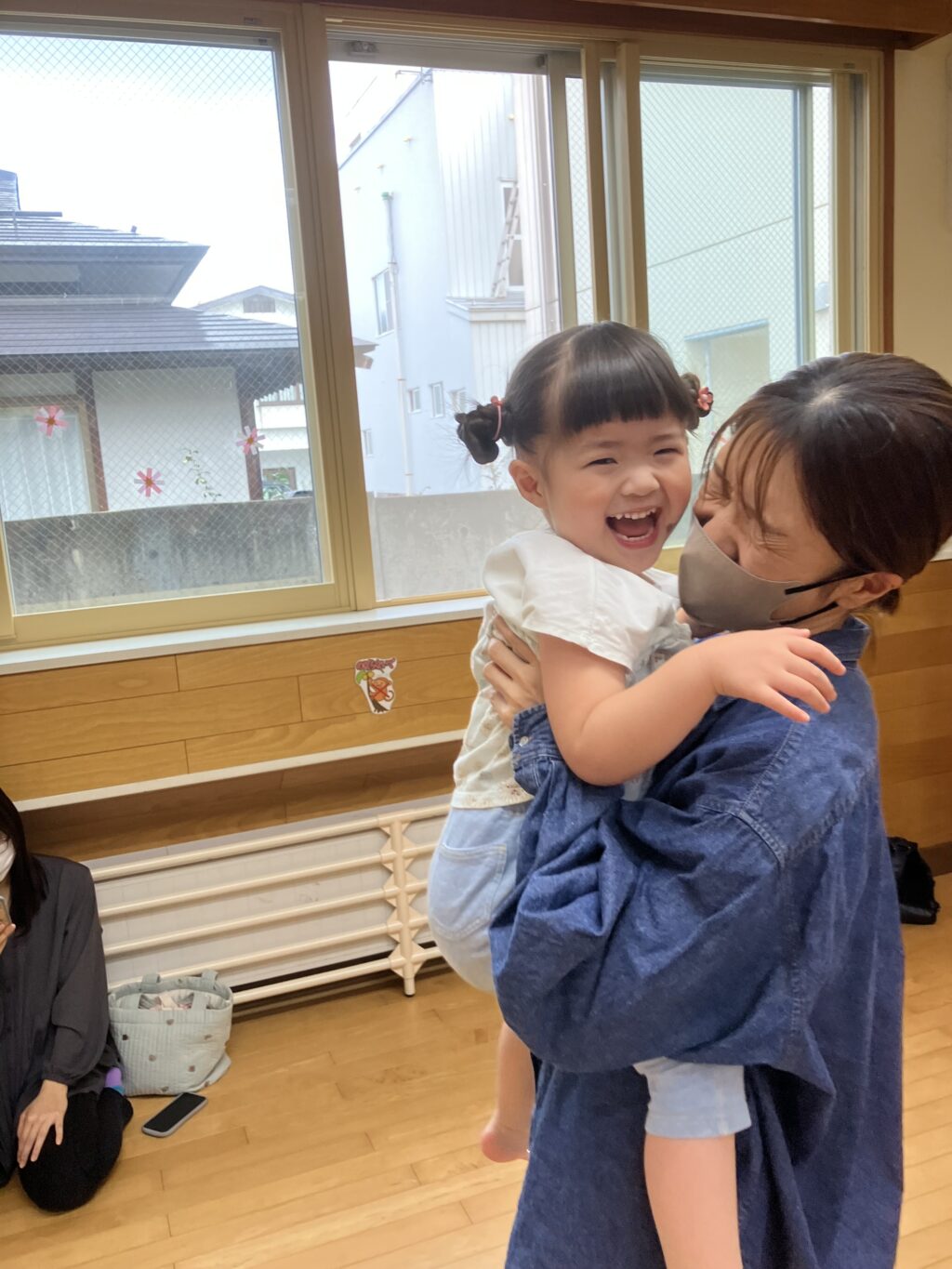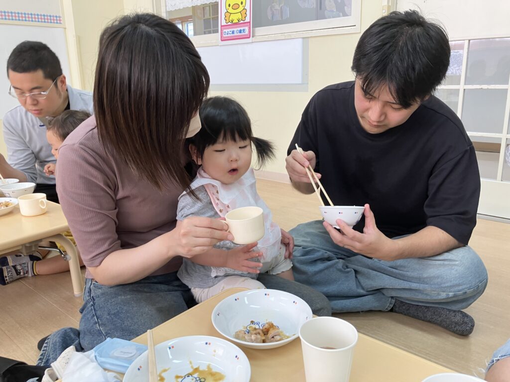 お家の方に高い高いをしてもらったり、しゃがんで「ギュー!」と抱きしめてもらったり…子どもたちの素敵な笑顔がたくさん見られました😊